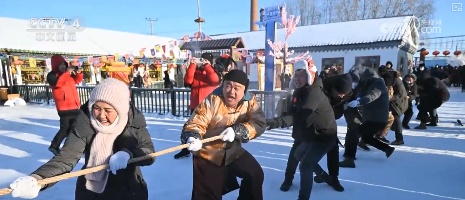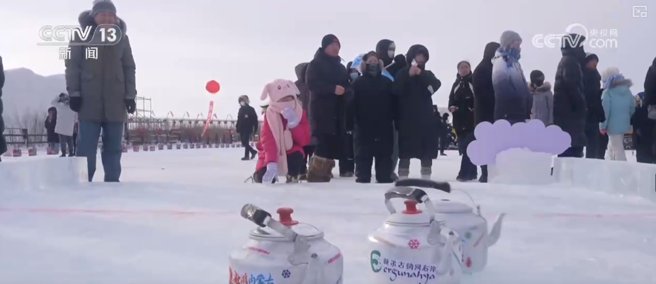 冰钓需要耐心和安静的环境。而冰雪娱乐区里却是另一番景象,拖拉机拉雪圈、冰壶投掷,以及趣味十足的“抓大鹅”等项目,让游客在冰雪中尽情释放活力。