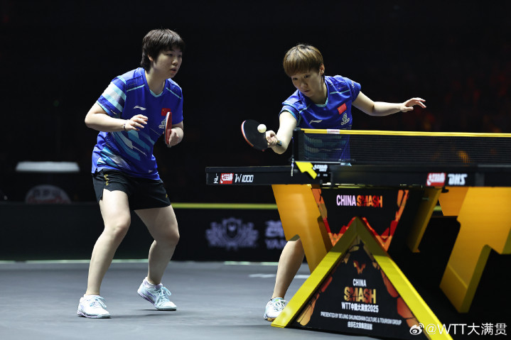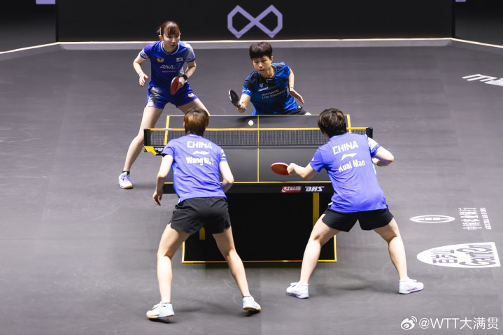 女双决赛率先进行,赛会头号种子王曼昱/蒯曼对阵日本的早田希娜与韩国朱芊曦组成的跨协会组合。王曼昱/蒯曼是多哈世乒赛女双冠军,也是今年WTT新加坡大满贯女双冠军,本次比赛首轮轮空的她们第二轮3-0战胜中国香港组合杜凯琹/朱成竹,1/4决赛3-0战胜日韩组合长崎美柚/申裕斌,半决赛2-0战胜卫冕冠军陈幸同/钱天一;早田希娜/朱芊曦首轮3-0战胜塞尔维亚组合卢普雷斯库/苏尔詹,第二轮3-2战胜日本组合张本美和/大藤沙月,1/4决赛3-0战胜泰国组合萨维塔布特/帕拉南,半决赛3-2战胜国乒组合王晓彤/徐奕。