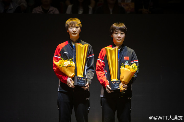 10月4日,WTT中国大满贯继续进行。女双决赛,国乒组合王曼昱/蒯曼3-1战胜日韩组合早田希娜/朱芊曦智策管家,获得冠军,这也是国乒在本次比赛中收获的第二冠。男单赛场,向鹏4-3战胜巴西的雨果·卡尔德拉诺,王楚钦4-1战胜日本的松岛辉空,国乒3人晋级男单四强。